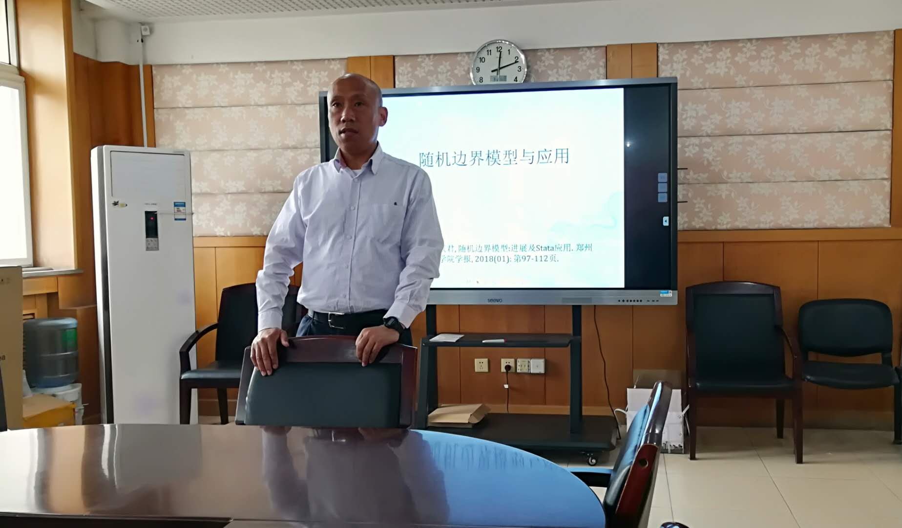李任斯老师详细和大家分享了有关单边随机边界模型和多边随机边界模型的最新研究内容,并向大家介绍了异质性单边随机边界模型影响其方差的主要因素等最新研究方向。