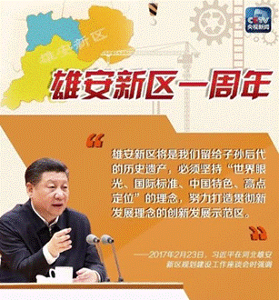 2017年4月1日,中共中央、国务院印发通知,决定设立河北雄安新区。这是以习近平同志为核心的党中央作出的一项重大历史性战略选择,是继深圳经济特区和上海浦东新区之后又一具有全国意义的新区,是千年大计、国家大事。
