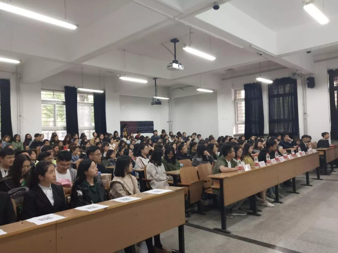 段晓阳和马田壮两位学长分享他们就业的经历,为同学们详细介绍获取就业渠道的方法,让同学们了解到会计事务所以及国企的录用要求,面试中会遇到的问题。他们积极与同学们互动,同学们积极响应,两位学长的幽默演讲使得同学们的笑声不断,显得格外欢乐。