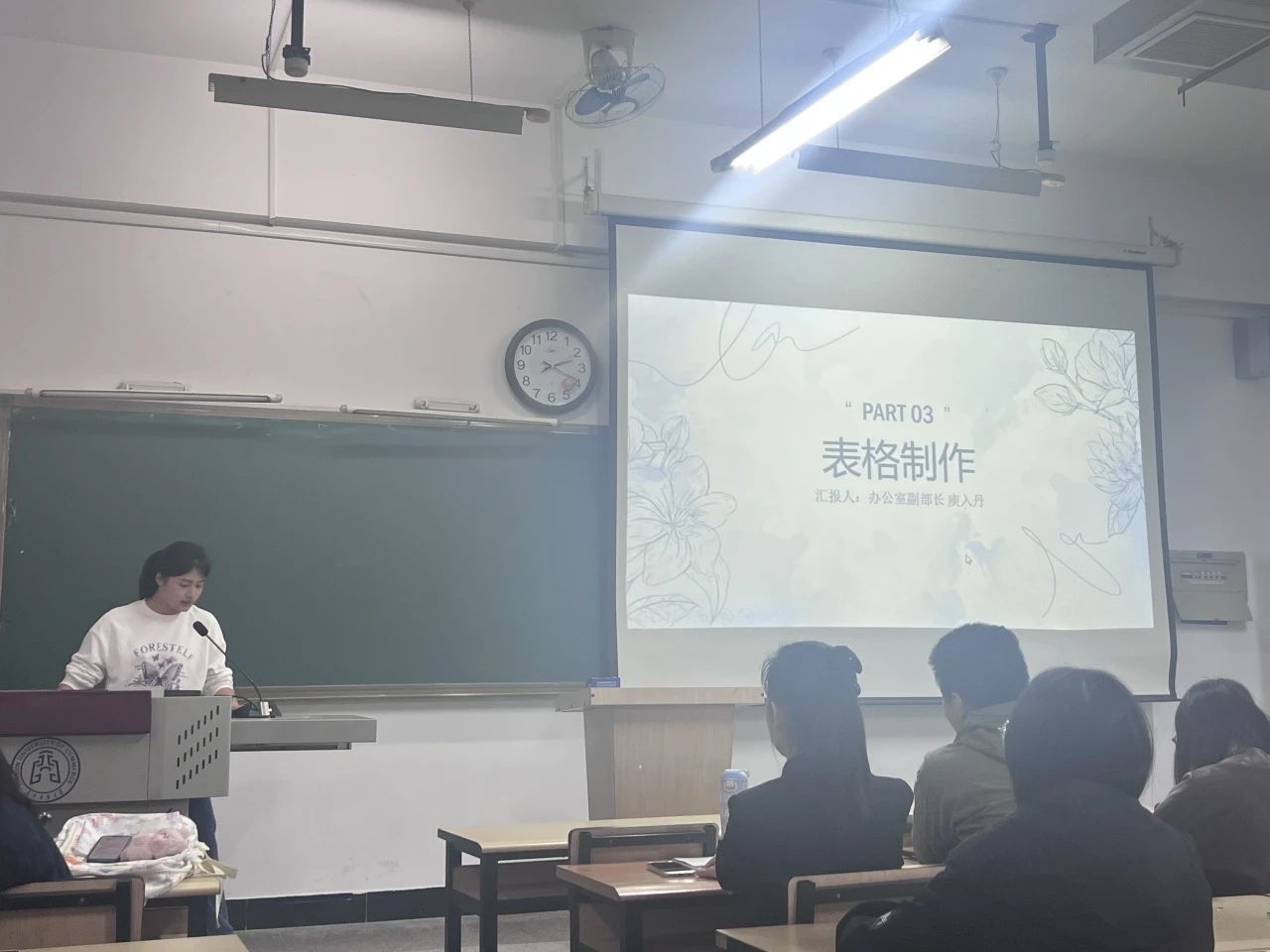 办公室副部长庾入丹对beats365团委工作中的表格制作流程以及表格种类进行了讲解。表格制作培训涵盖基础操作,包括更改字号字体,调整落款、插入合并单元格等,熟练地掌握有利于提升干事表格制作及办公能力。